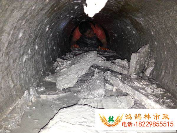 管道疏通技术部 工作人员正在管道中垃圾往外运!