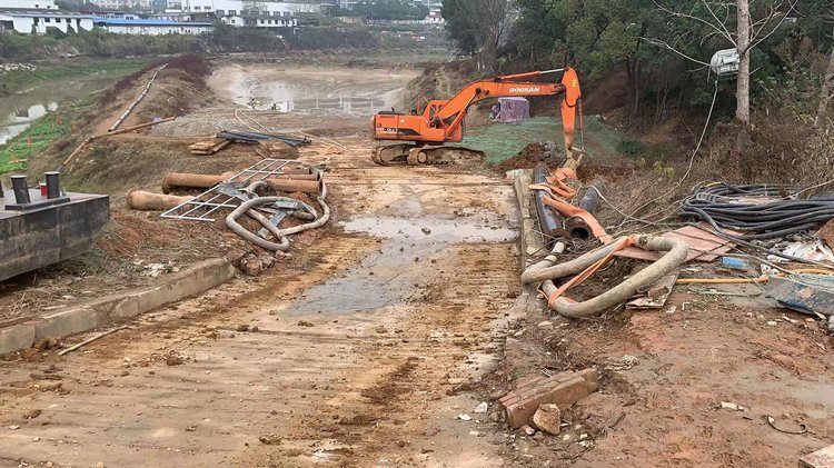 施工便道铺筑钢路基箱及新建沉泥转运池