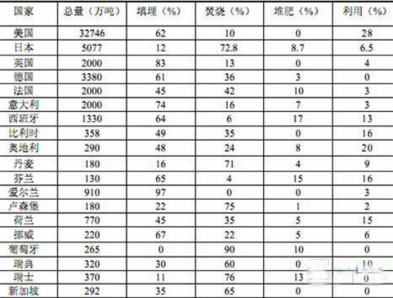 目前,世界各国城市生活垃圾的处理方法主要有填埋、堆肥和焚烧三种,根据各国的国情不同和垃圾成分的差异,采用的处理方式也不同。
